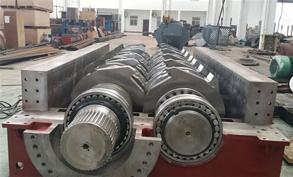 轮胎撕碎机是利用两个耐磨撕碎齿辊,工作时两个撕碎齿辊之间实行相对旋转,形成一个V型撕碎齿腔,产生的剪切力来破碎物料,物料进入两齿辊间隙(V型破碎腔)以后,受到两齿辊相对旋转的剪切力作用, 将进入的物料撕扯、剪切至需要的粒度由排料口排出。